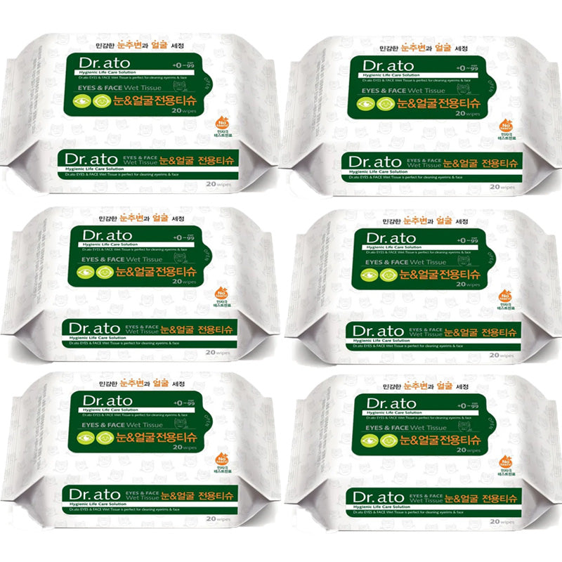 Dr.ato Eyes & Face Wet Tissue 20p X 6 Packs Bundle